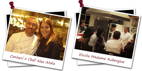 Aula na conceituada escola de gastronomia Madame Aubergine.(a direita). Me tornei Chef Consultora da Thermomix e em seu lançamento tive a oportunidade de conhecer o Chef Alex Atala.(a esquerda)
